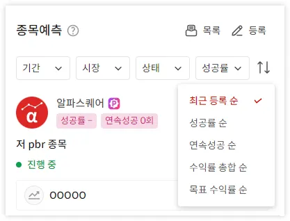 종목예측 필터/정렬 옵션 개선