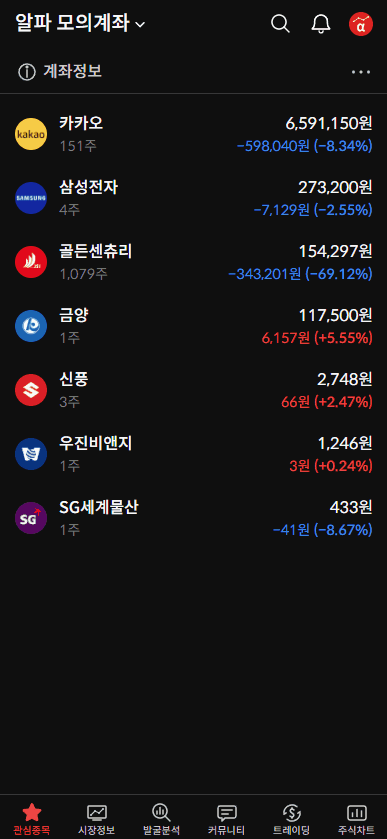 주식차트 탭에서 확인할 수 있는 포트폴리오 항목에서 실시간 시세도 확인할 수 있게 되었습니다.