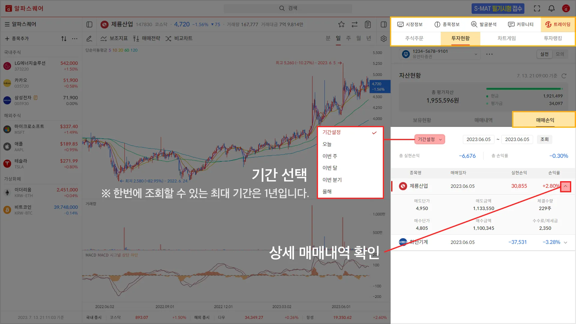 이제 특정 기간의 실현 손익을 손쉽게 파악할 수 있게 되었습니다.