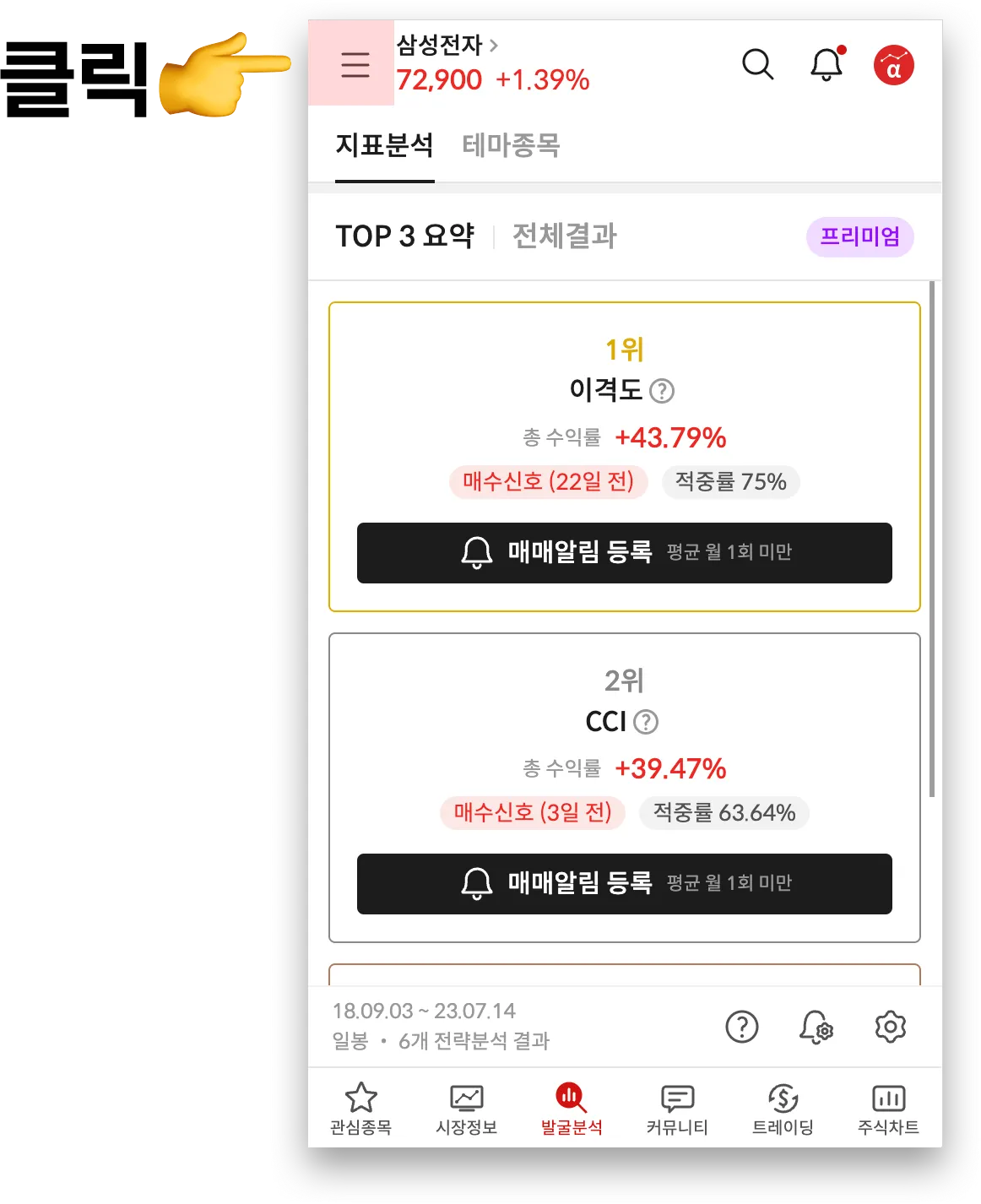 내가 원하는 종목, TOP3 전략에 대한 매매알림을 실시간으로 받아볼 수 있습니다.