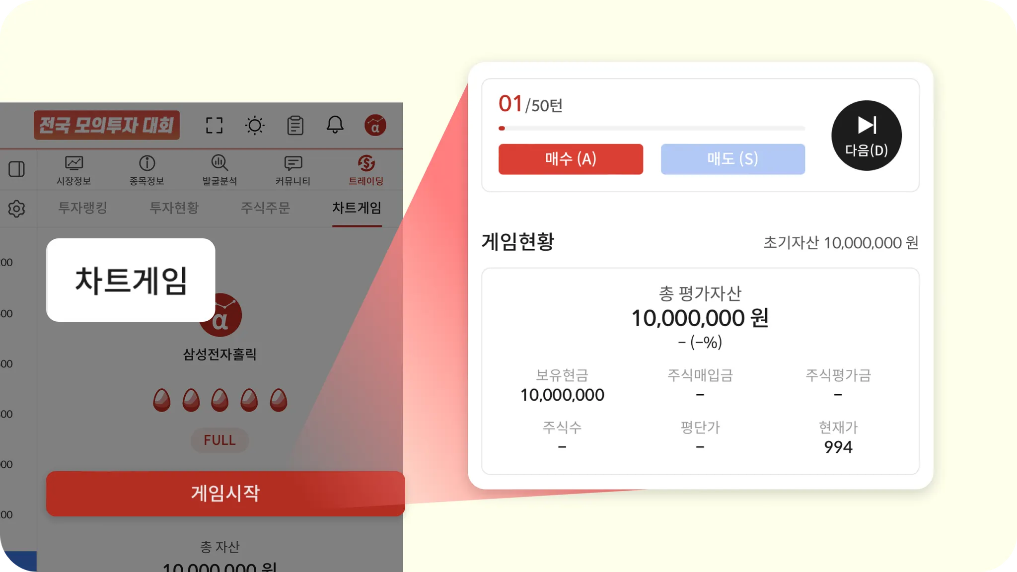 트레이딩 메뉴의 4번째 기능으로 ‘차트게임’이 새로 생겼습니다. 차트게임은 실제 과거…