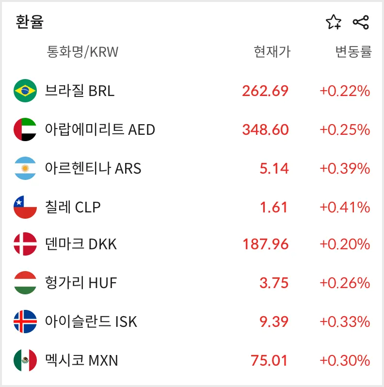 브라질, 아랍에미리트, 아르렌티나 등 총 18개의 환율 데이터가 추가되었습니다.