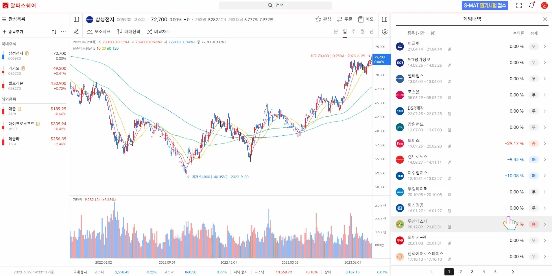 포트폴리오/주식주문에서 종료된 S-MAT 시험의 성과평가서 다운로드 버튼이 추가되었습니다.