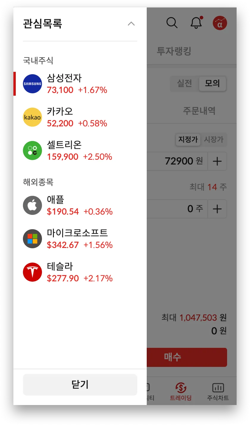 모바일 주문 및 종목 차트 기능의 사용성을 개선했습니다.