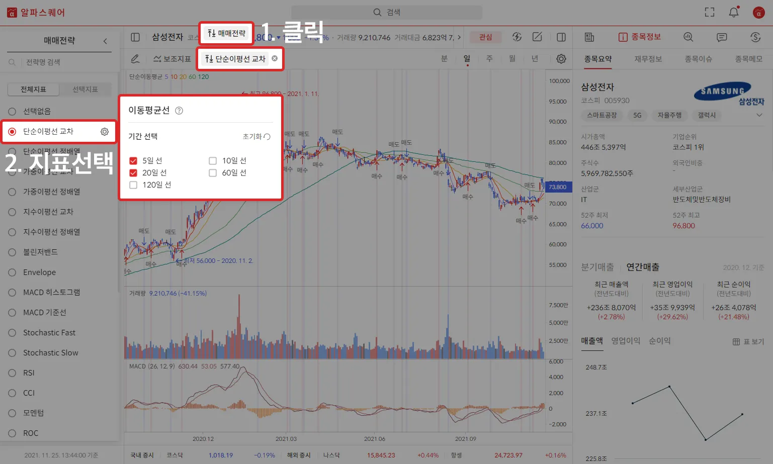 원하는 지표 선택(차트에 표시할 지표 1개 선택)