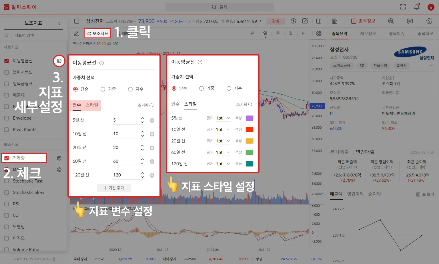 스타일 설정: 해당 지표의 스타일을 설정할 수 있습니다.