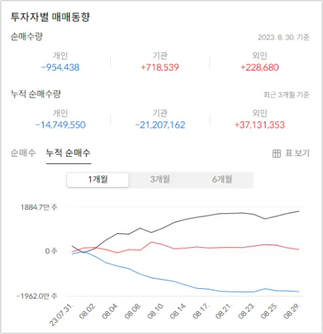 개인은 수가 적고 자금이 적으며 의견이 분산되어 있어 주가에 큰 영향을 끼치기가 어렵습니다. 때문에 기관 투자자들의 관심이 어디로 향하고 있는지가 중요합니다.