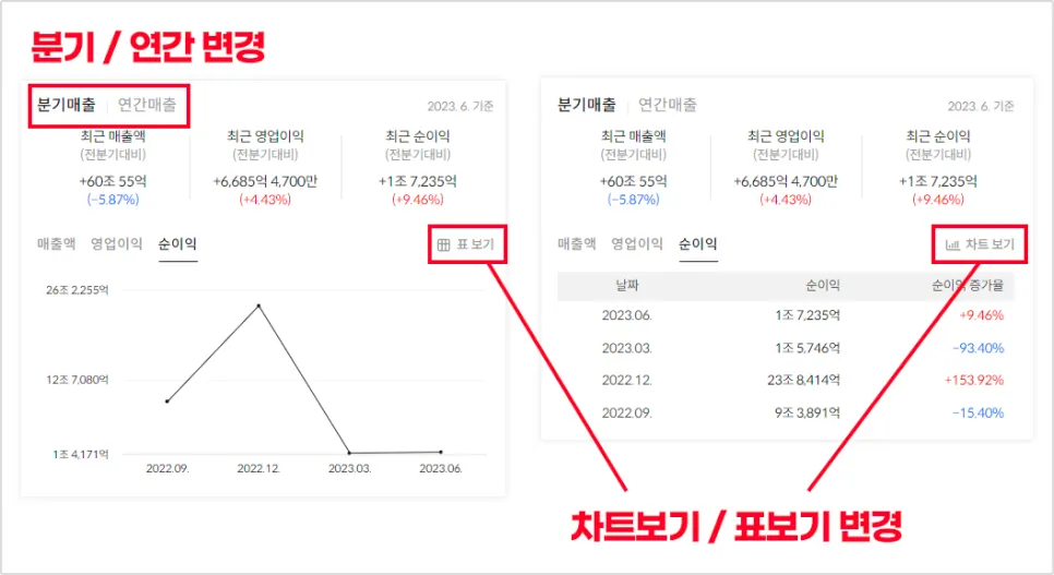 알파스퀘어 종목 정보에서는 재무제표를 볼 줄 몰라도 그래프로 순이익과 매출액, 영업이익 / 기관 투자자들의 매매동향 / 시장정보를 확인할 수 있습니다.
