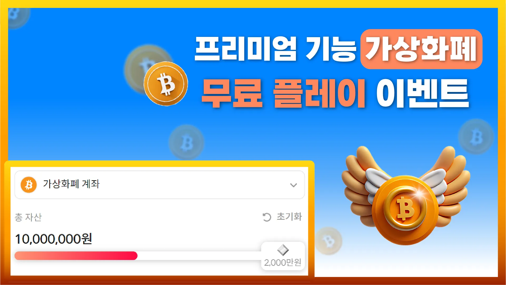 차트게임 프리미엄 유저만 사용할 수 있었던 가상화폐 플레이 기능을 무료로 사용할 수 있게 되었습니다.
