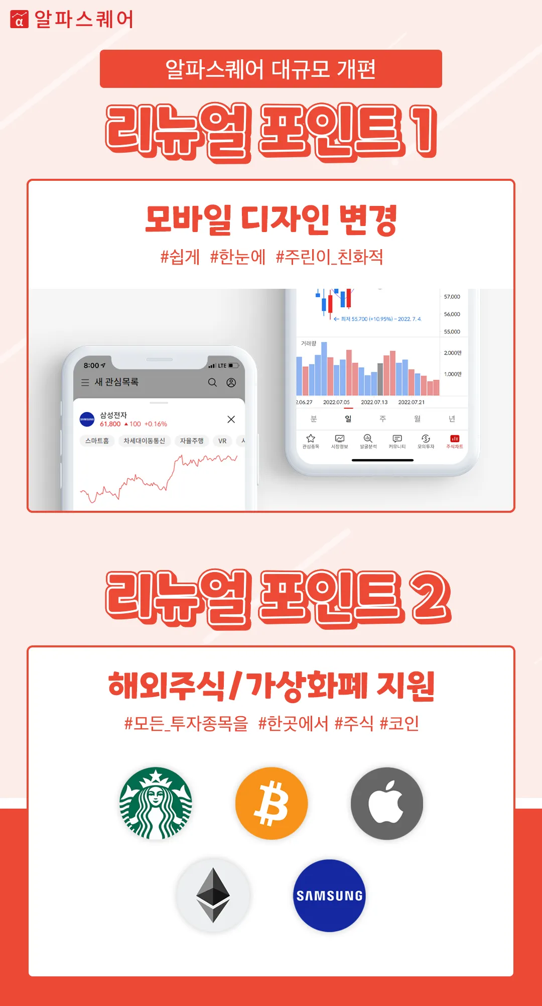 ※ 리뉴얼된 부분(가상화폐, 해외주식)과 모바일 UI/UX가 변경된 것을 언급하여 리뷰작성 시 당첨 확률 UP!
