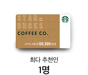 1명(최다 추천인): 스타벅스 10만원 상품권