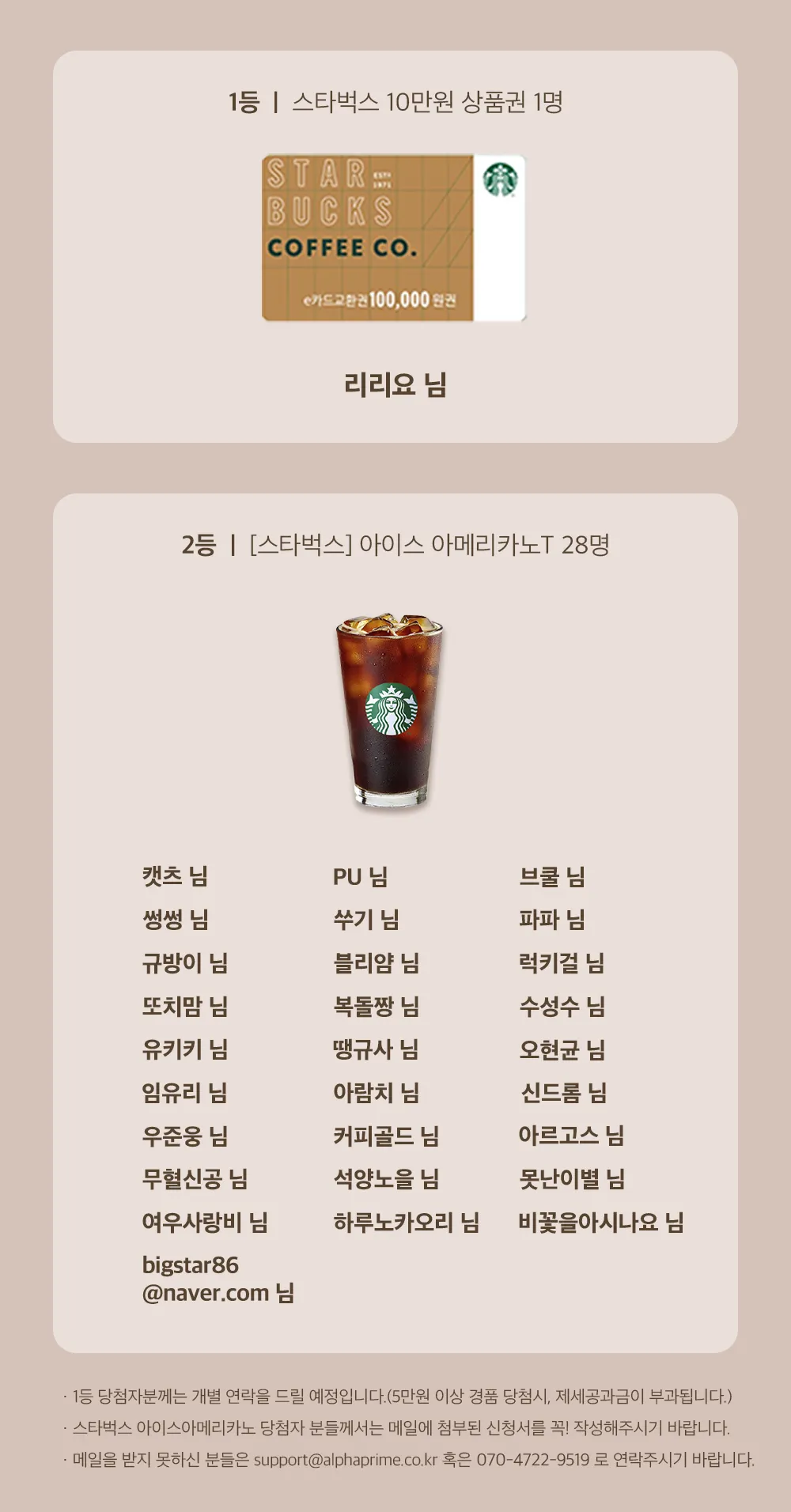 100명(추첨): 스타벅스 아메리카노 기프티콘