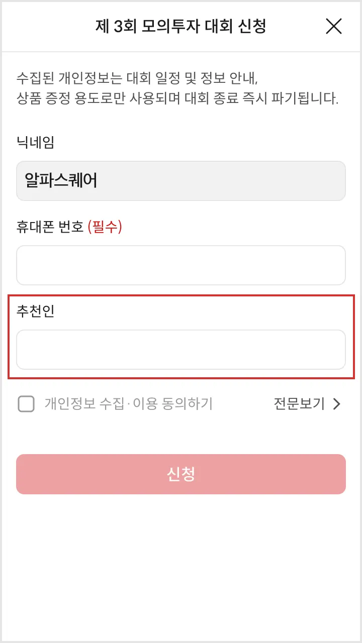 ※ 대회용 계좌인지 한번 더 확인하세요!