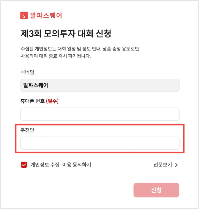 알파스퀘어 앱 오른쪽 하단의 ‘모의 투자’ 메뉴 → ‘투자현황’ 탭 클릭