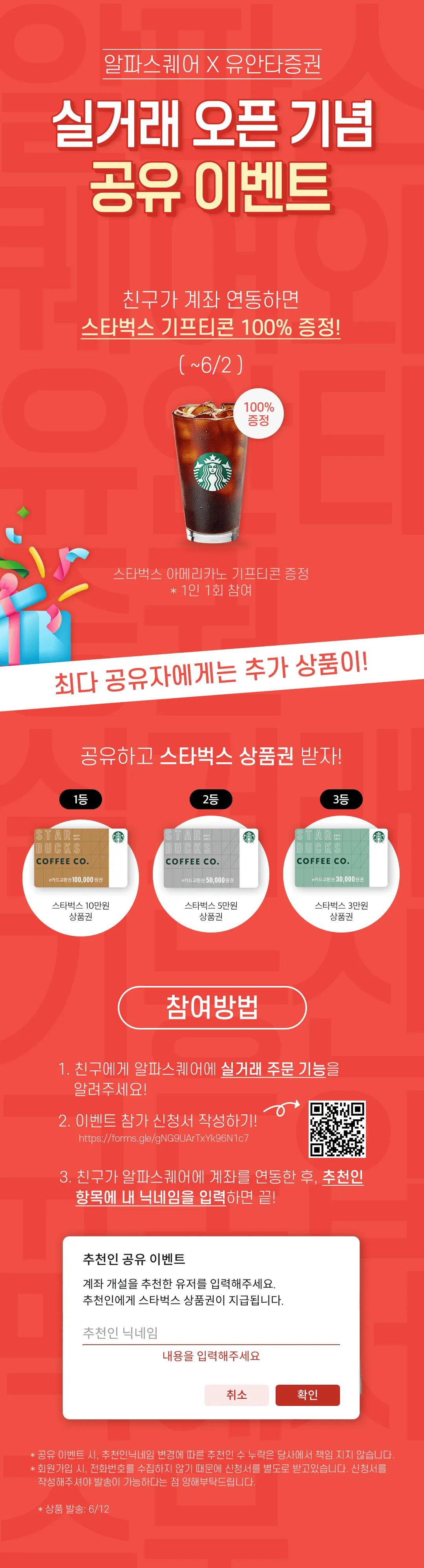 친구에게 알파스퀘어 실거래 기능 소개하고 스타벅스 기프티콘 100% 받아가세요