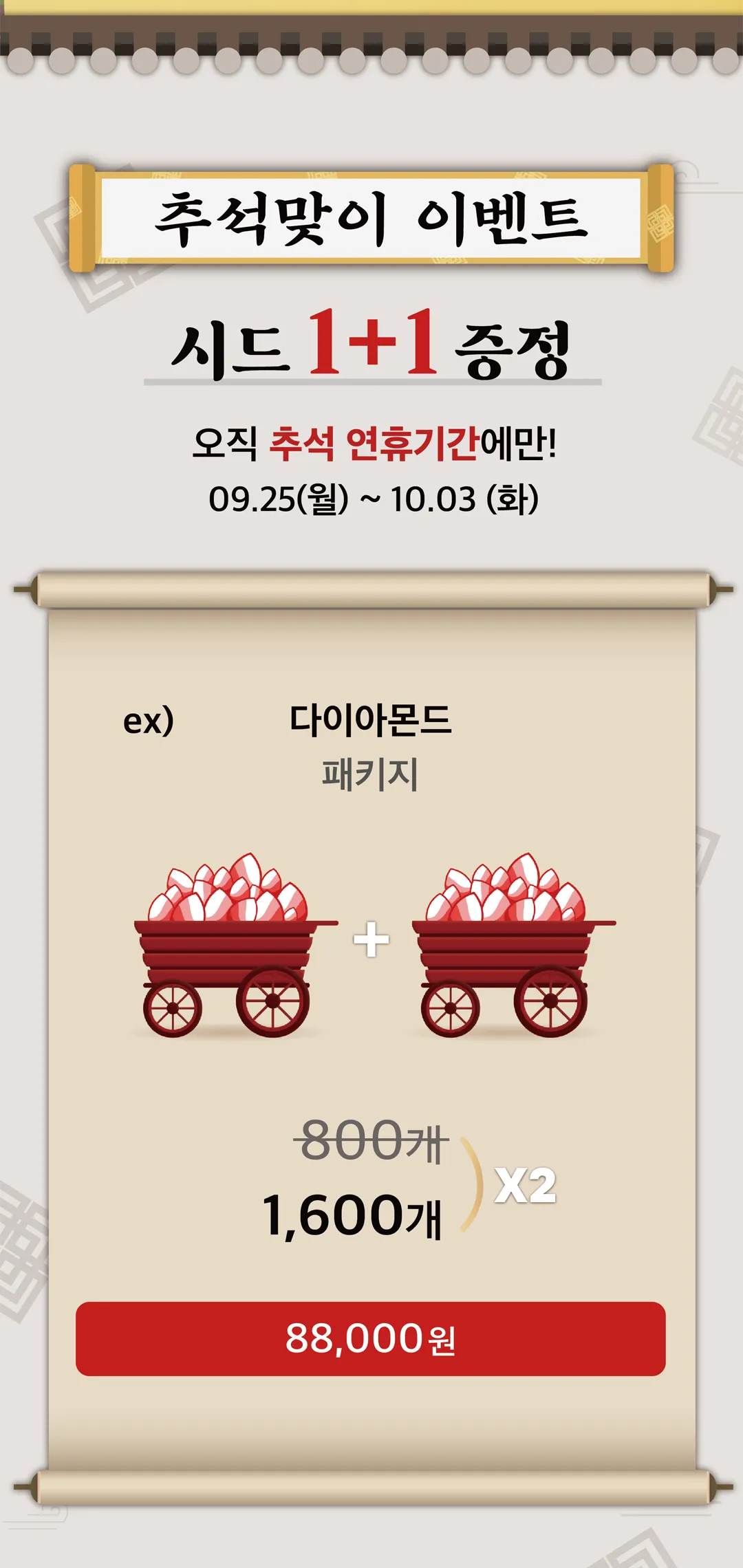딱 추석 연휴기간 동안!만 진행하는 시드 1+1 이벤트