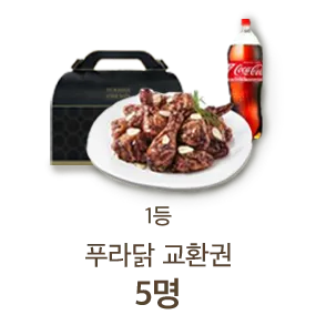1등 상품(5명): 푸라닭 교환권 (블랙알리오+콜라)
