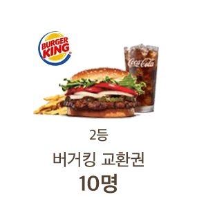 2등 상품(10명): 버거킹 교환권 (버거킹 불고기 와퍼세트)