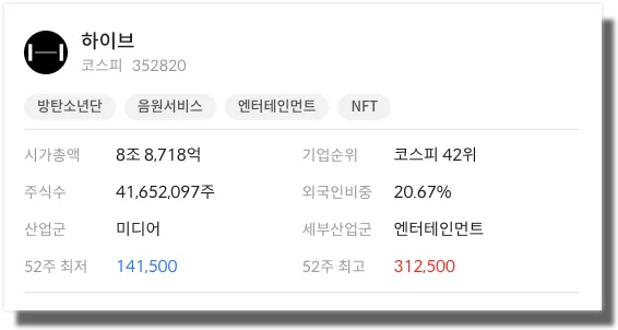 하이브는 2005년 2월 설립된 기업으로 글로벌 아티스트를 육성하고, 음악 기반 라이프스타일 콘텐츠를 제작 및 서비스하는 엔터테인먼트 기업입니다.