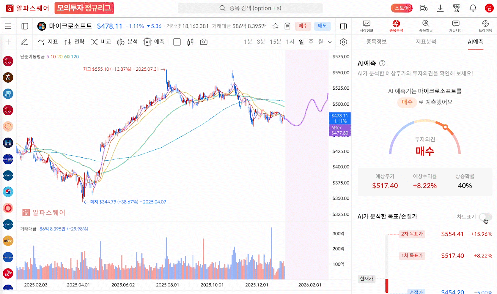 미래에 그려질 차트 패턴과 투자의견을 제공하는 기능입니다.
