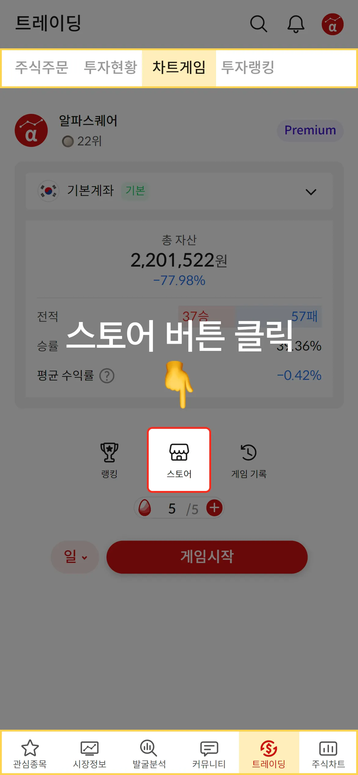차트게임은 실제 과거 차트를 활용하여 매매연습을 할 수 있는 기능으로, 차트 매매 스킬을 시간에 구애받지 않고 연습하고 싶은 분들께 유용합니다.
