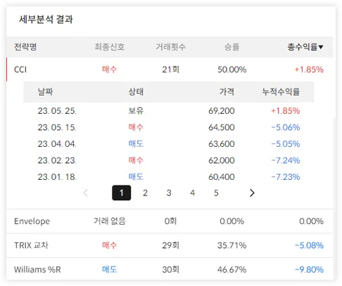 전체 세부 결과에서는 TOP3의 전략뿐만 아니라 제공되는 모든 전략분석에 대한 결과를 확인할 수 있